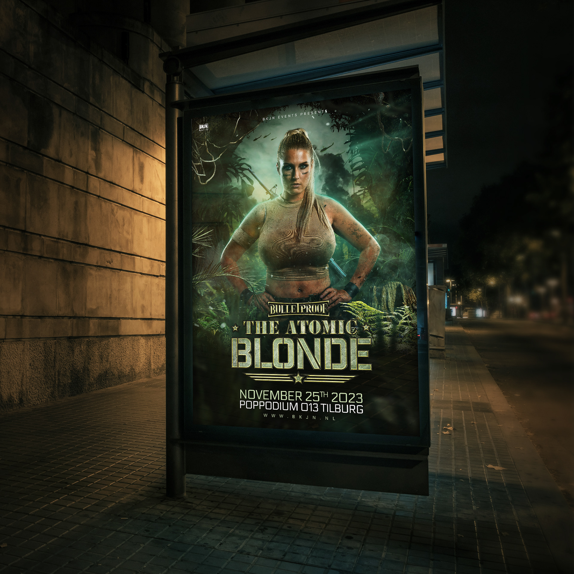 Key visual created for the second edition of Bulletproof - The Atomic Blonde. An event by BKJN Events.